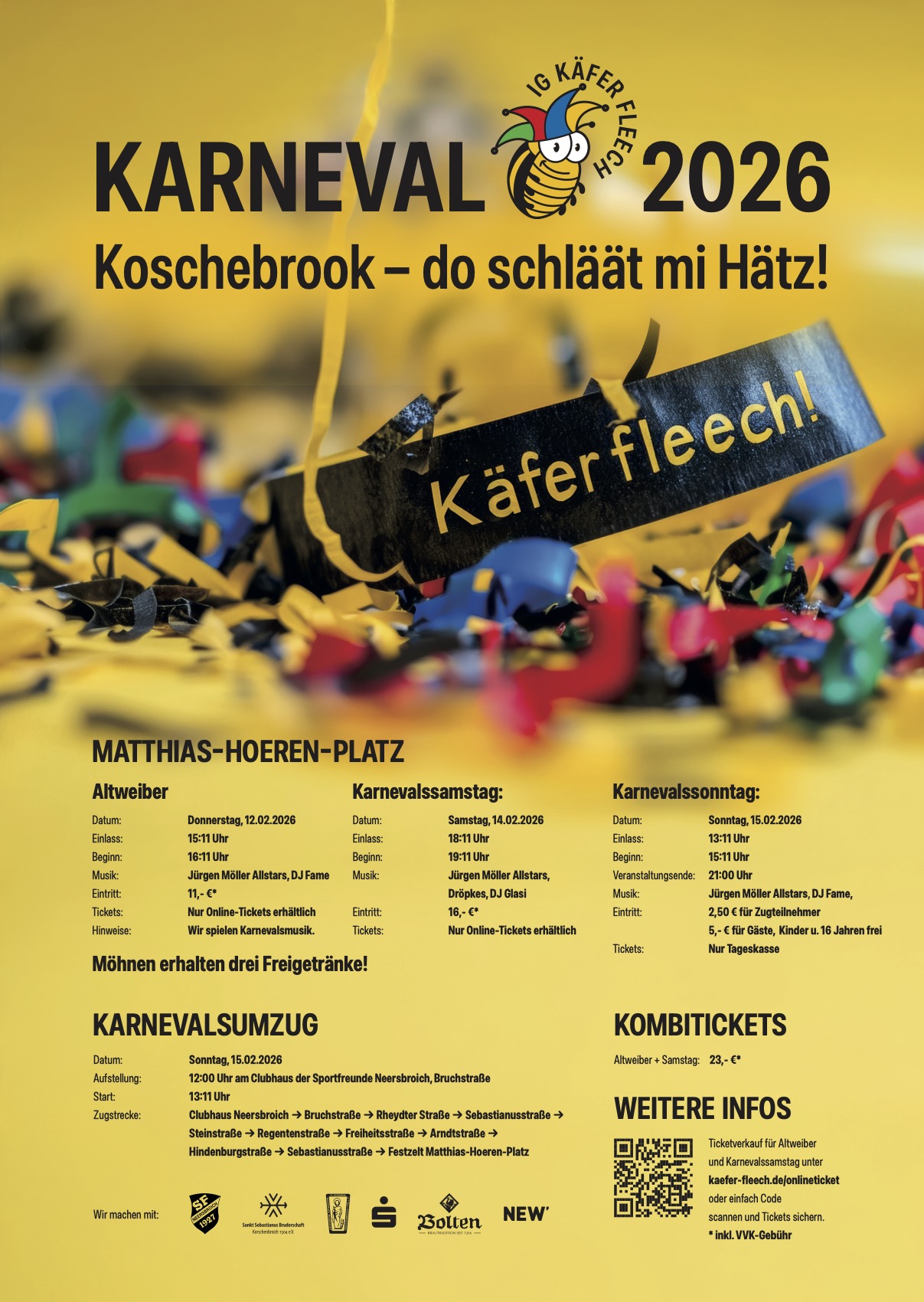 Tickets, die Anmeldung zum Karnevalsumzug und alle Infos gibt es hier: http://www.kaefer-fleech.de